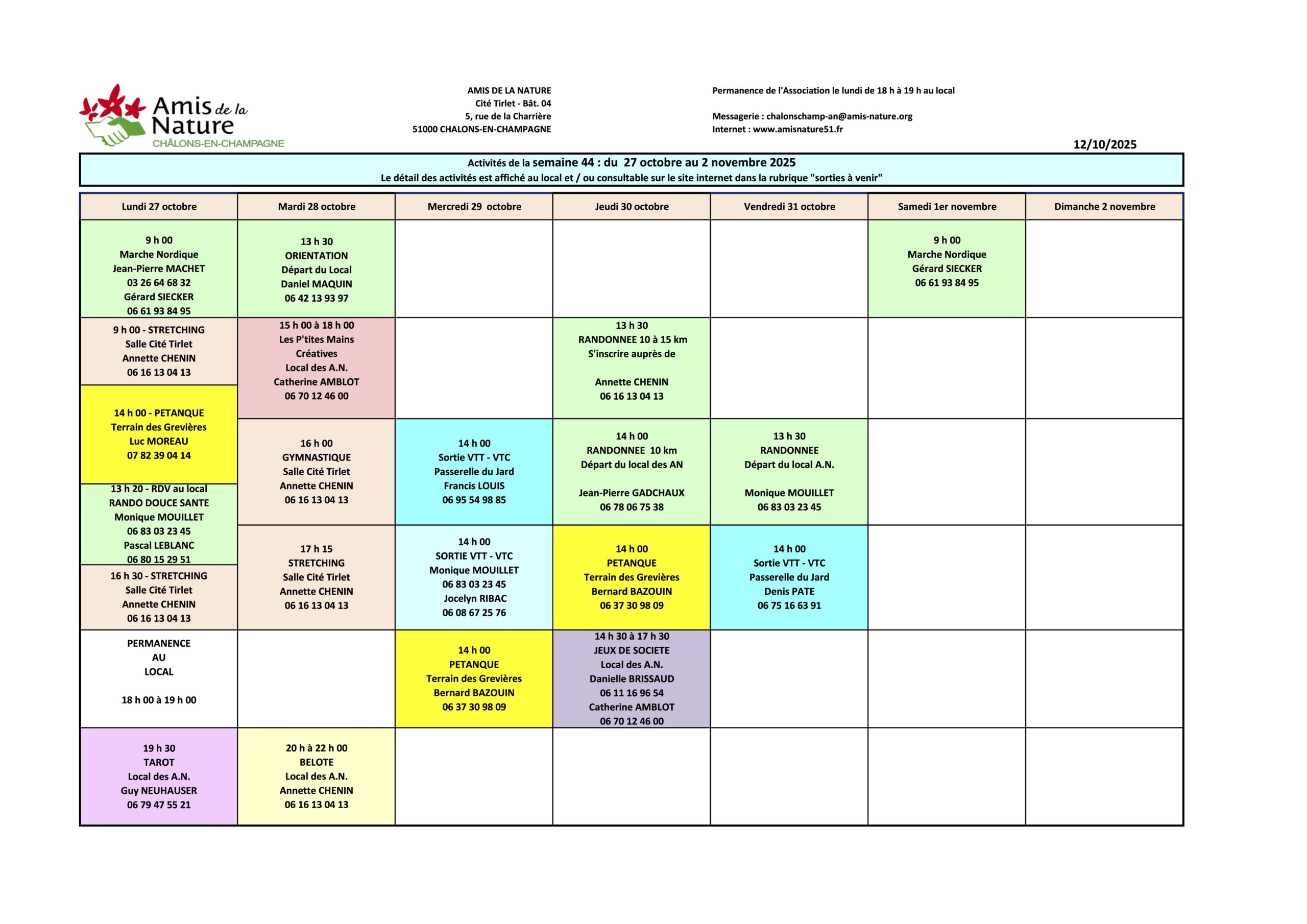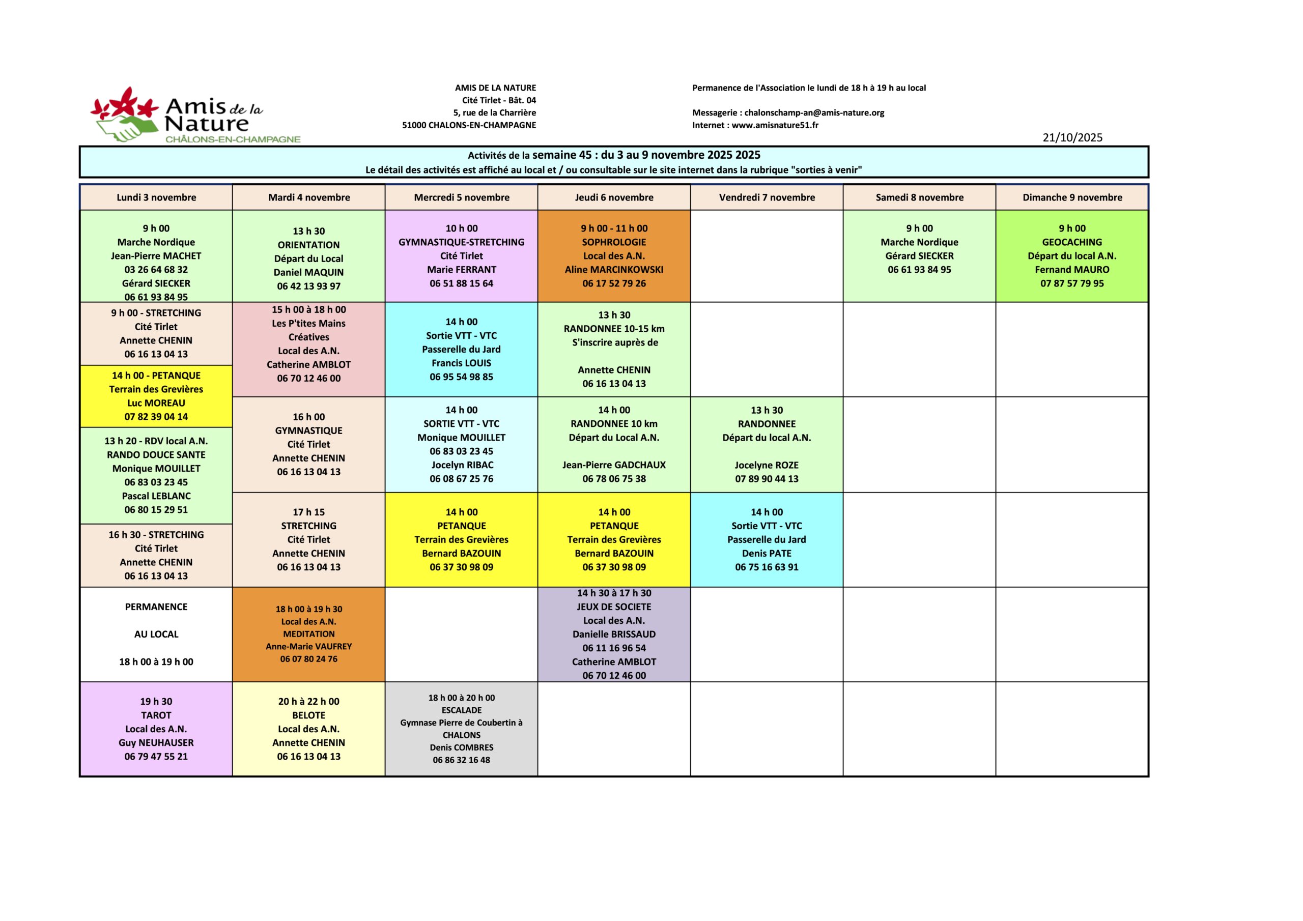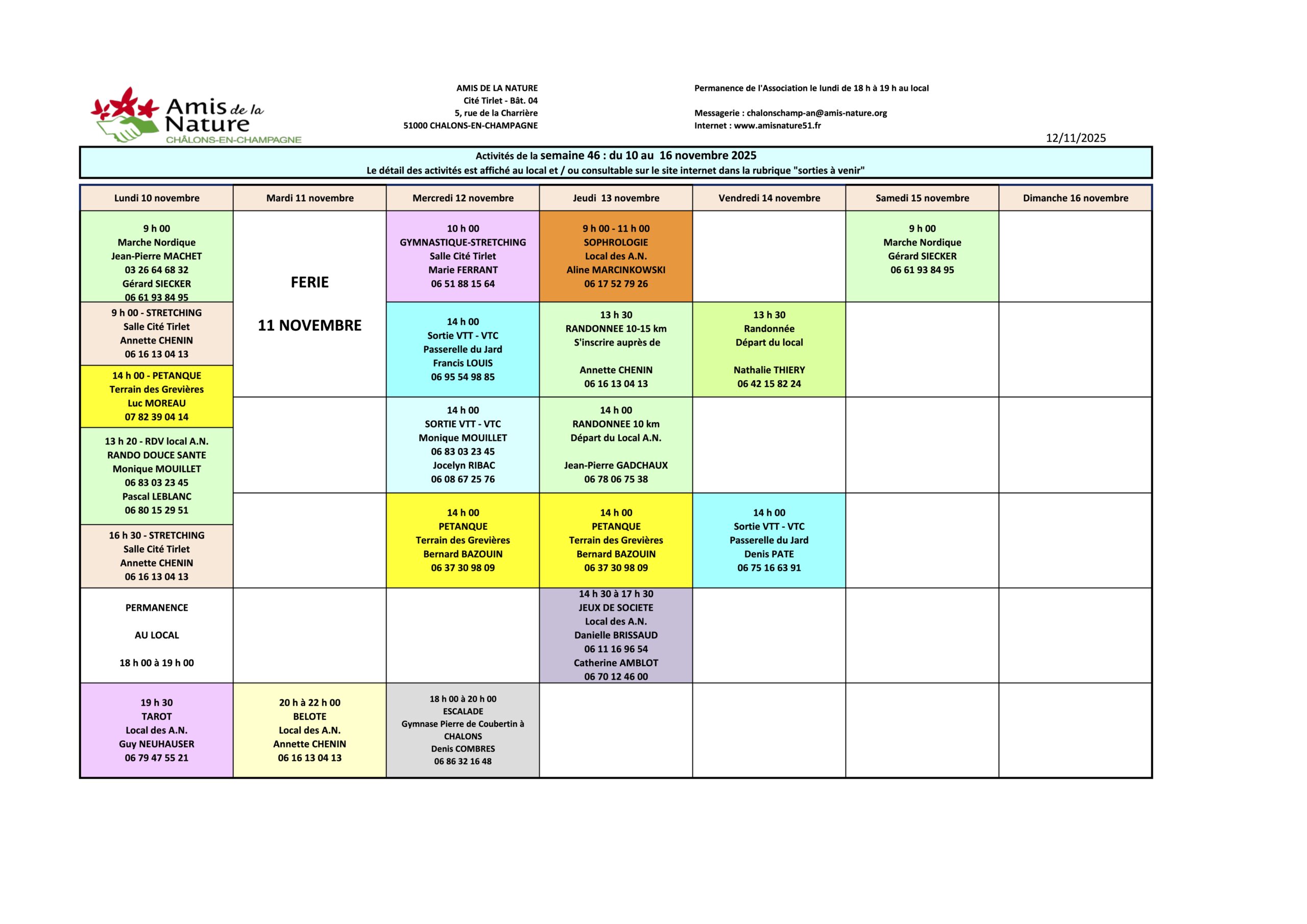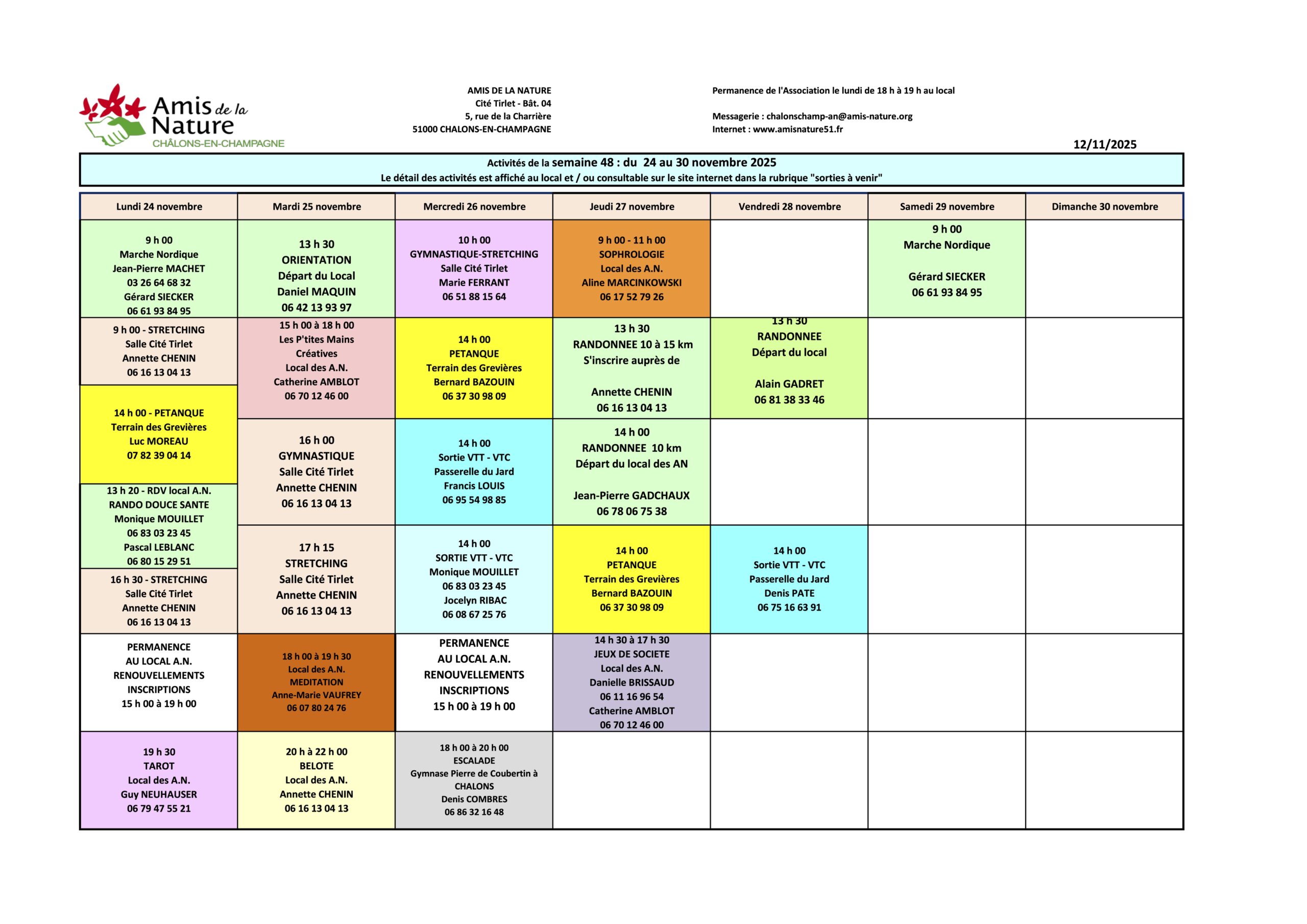 Les fiches ci-dessous peuvent être modifiées pour diverses raisons (annulation, report, changement d'horaires, etc..).