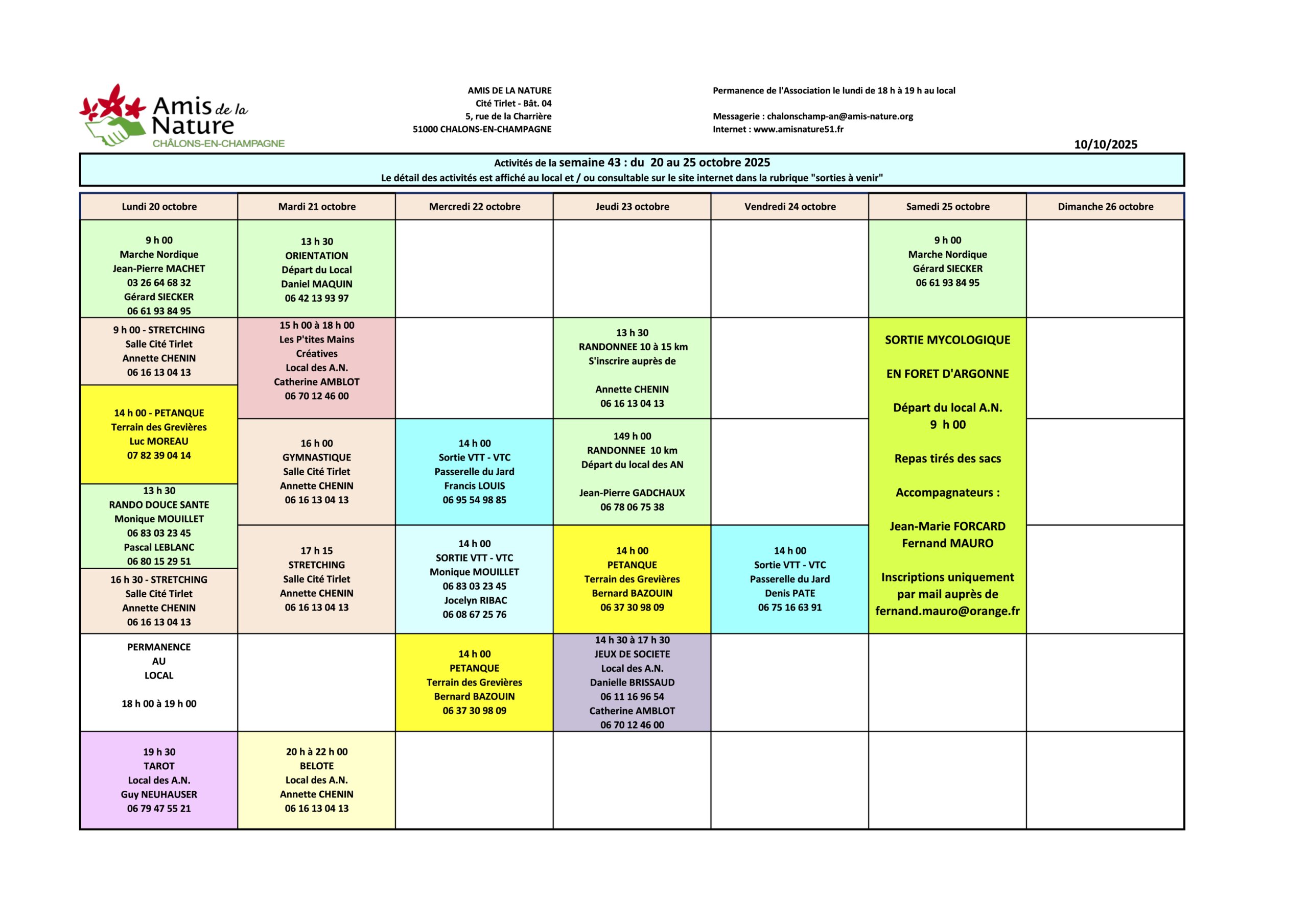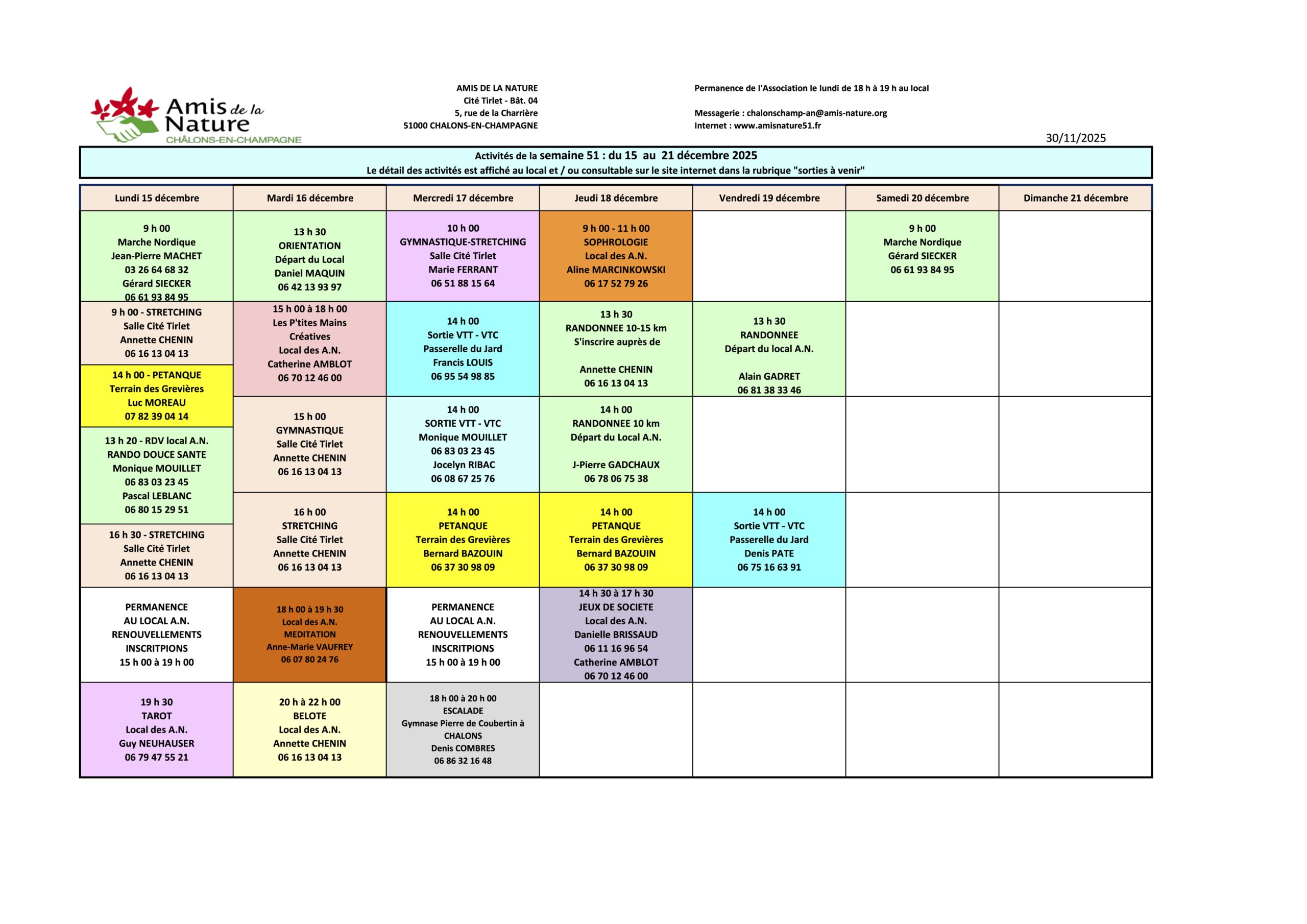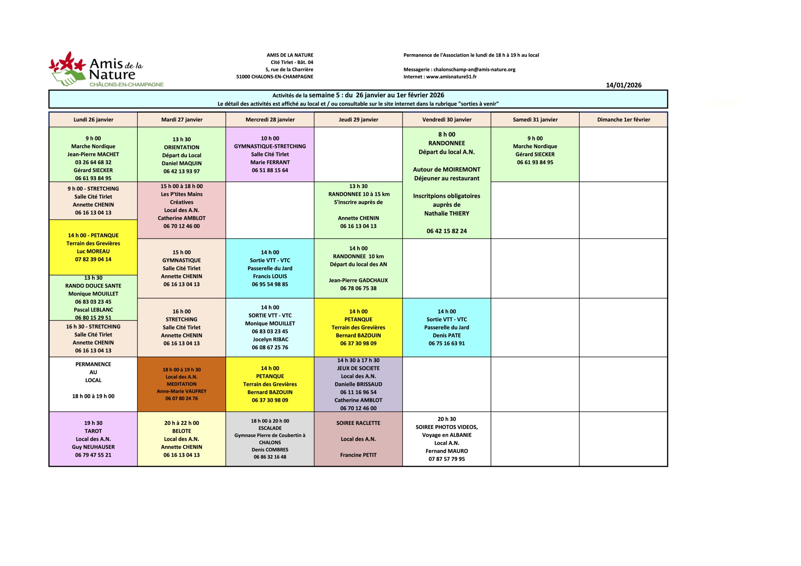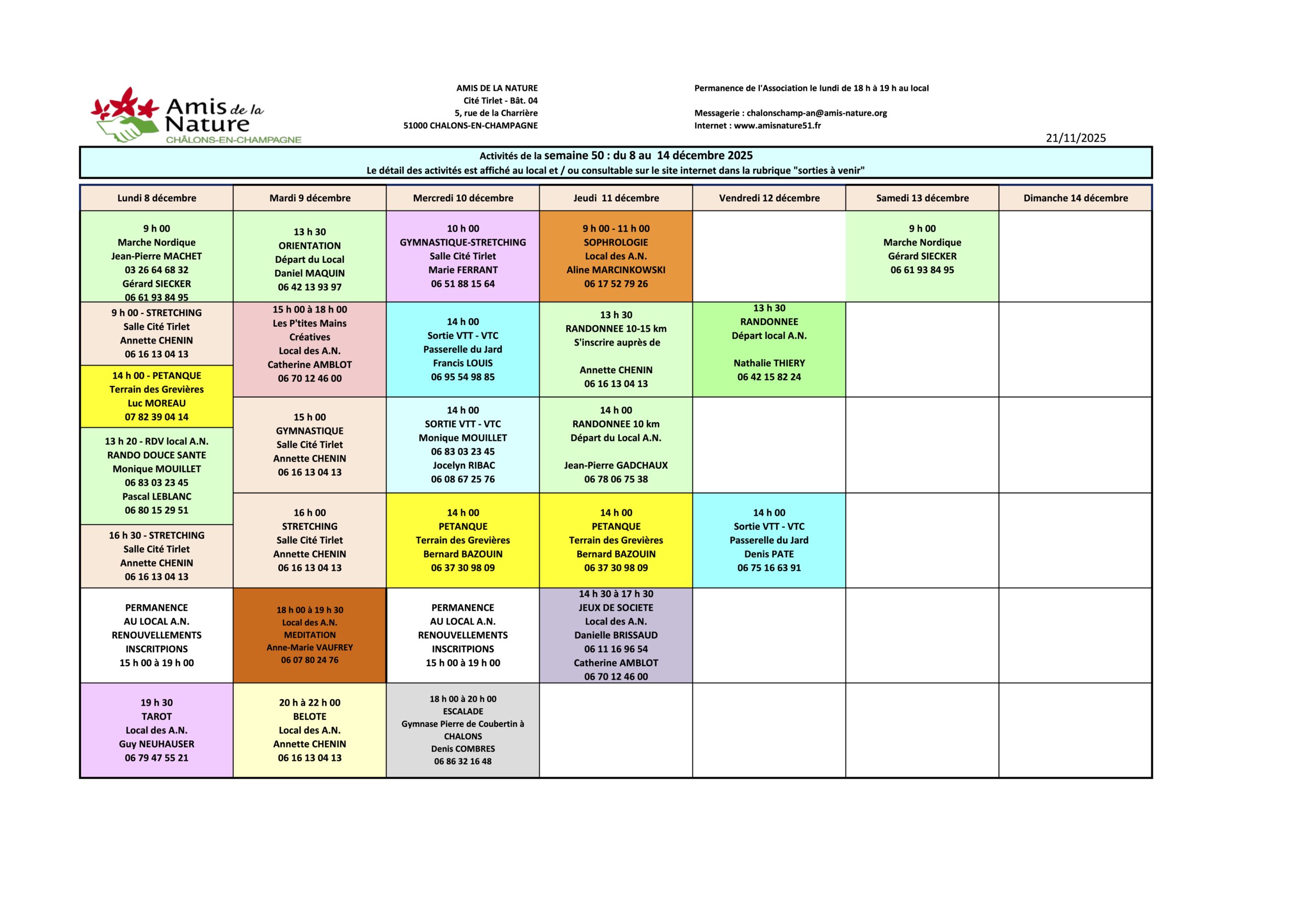 Les fiches ci-dessous peuvent être modifiées pour diverses raisons (annulation, report, changement d'horaires, etc..).