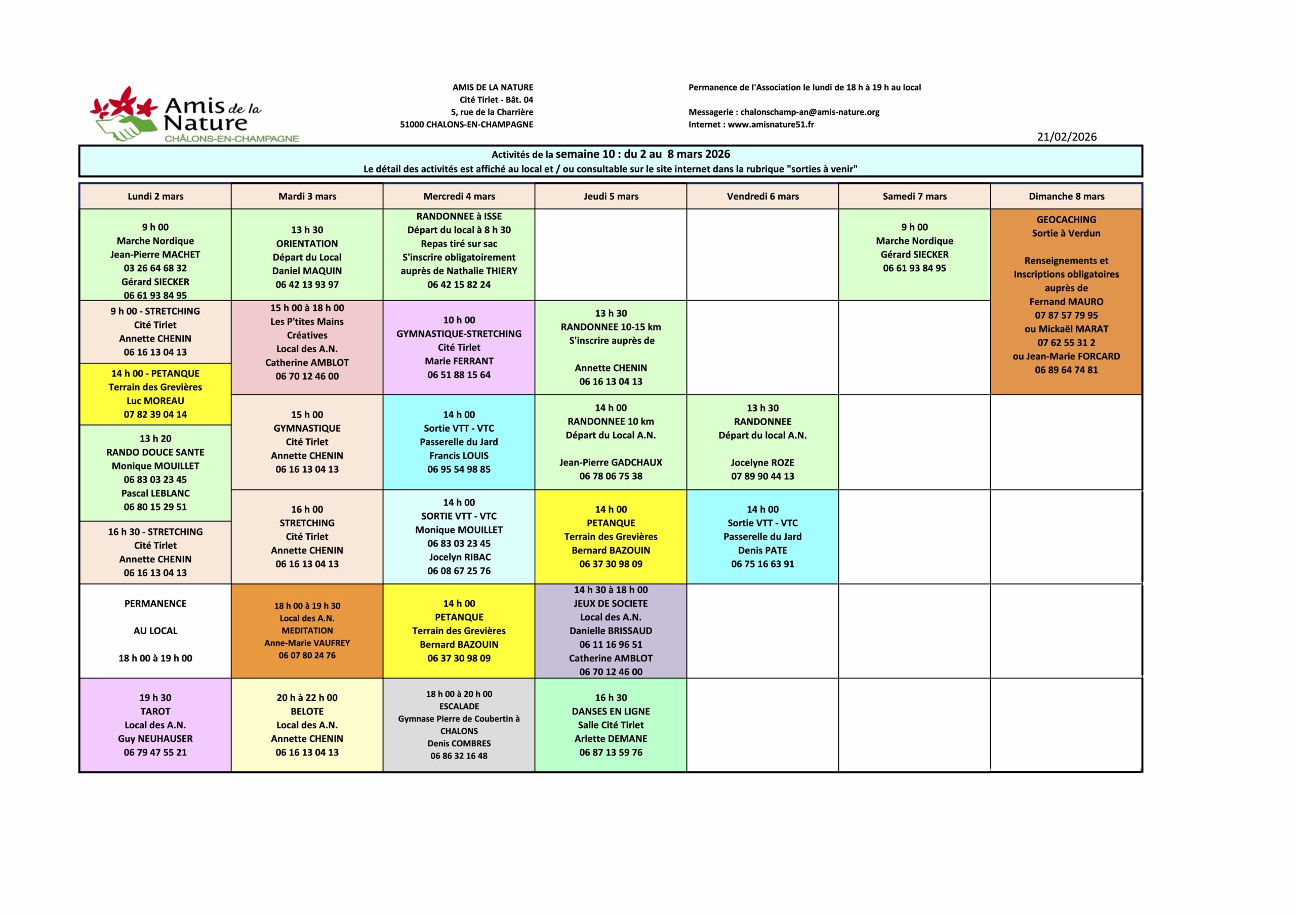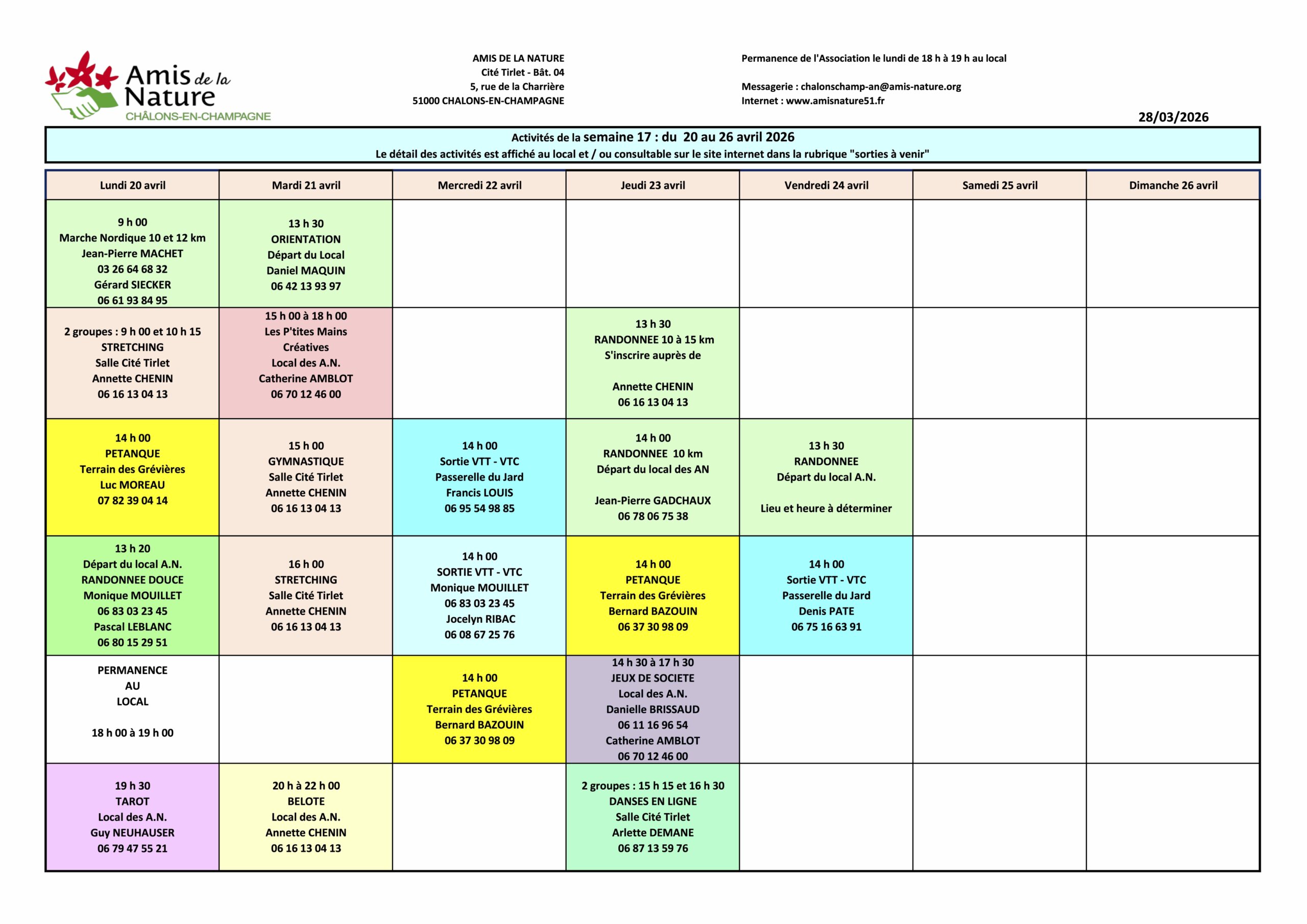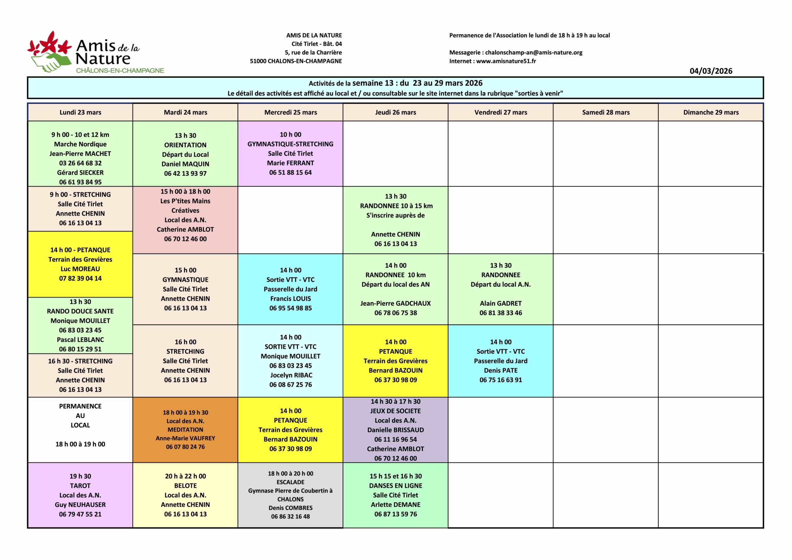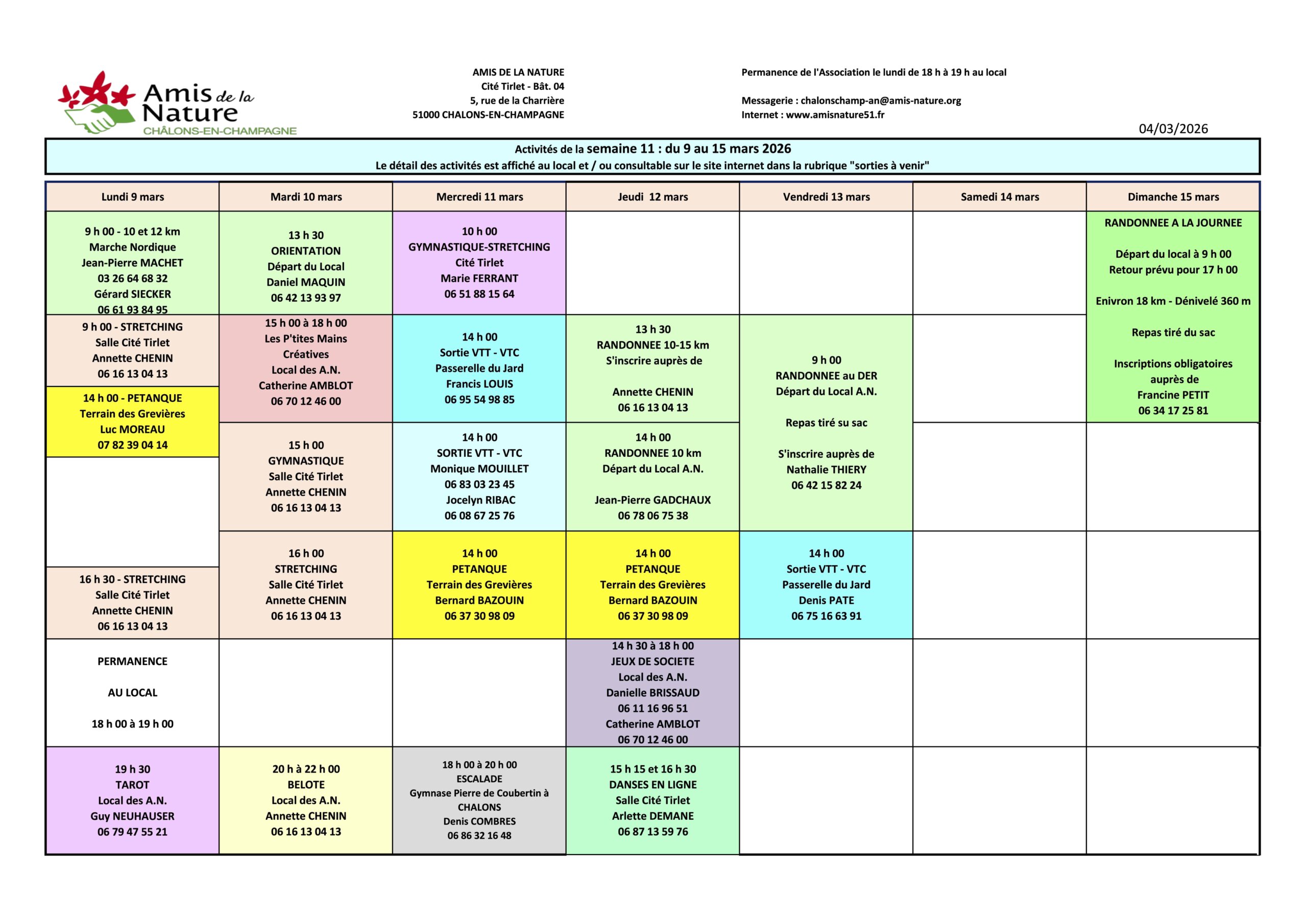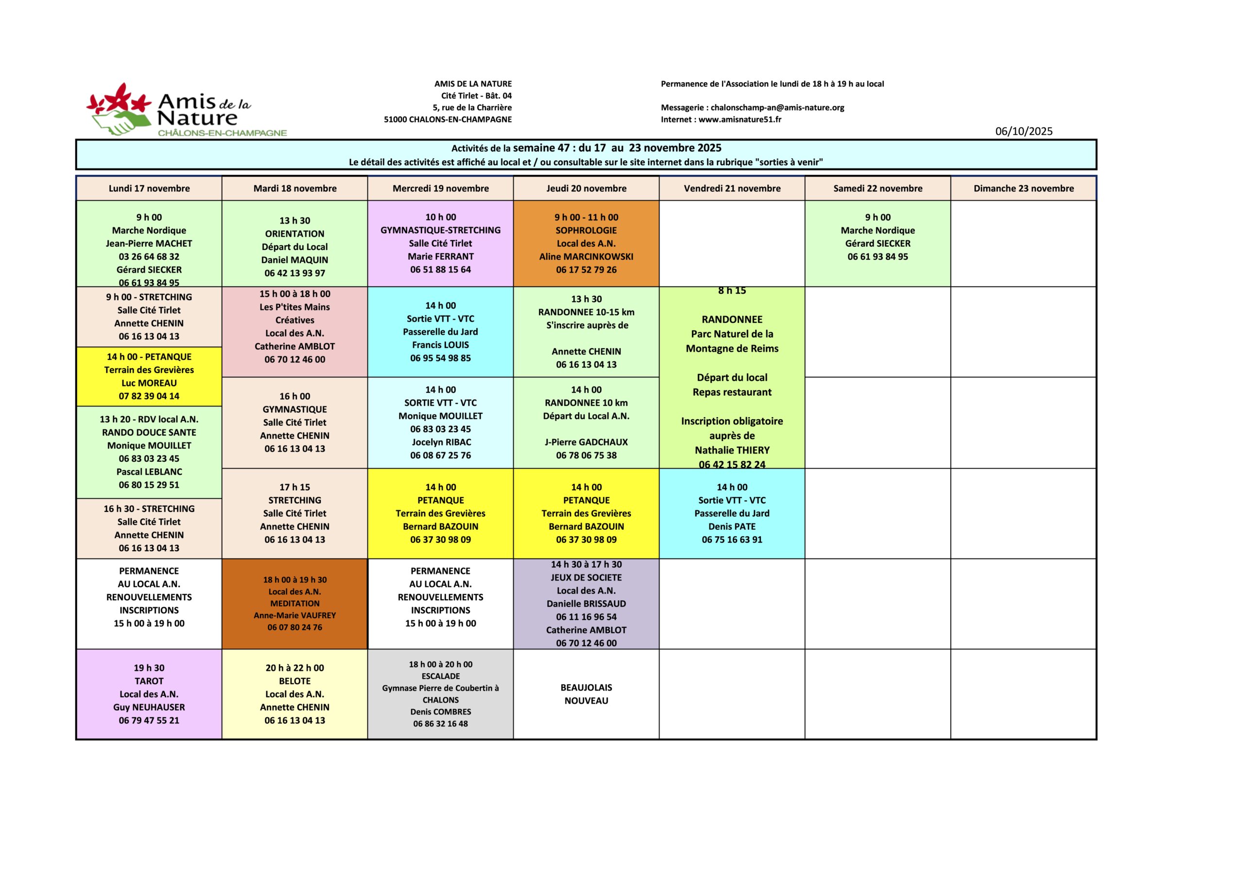 Les fiches ci-dessous peuvent être modifiées pour diverses raisons (annulation, report, changement d'horaires, etc..).