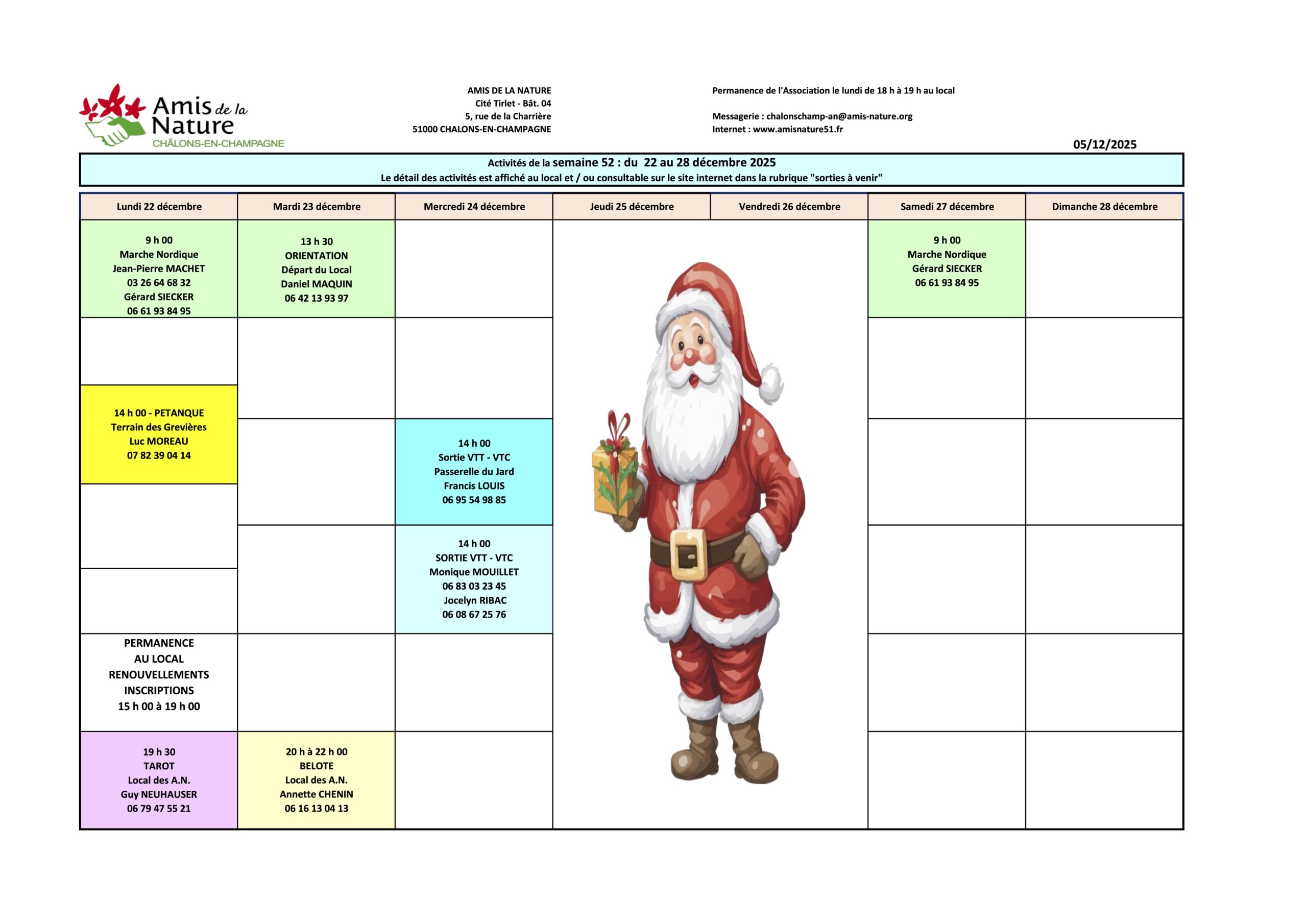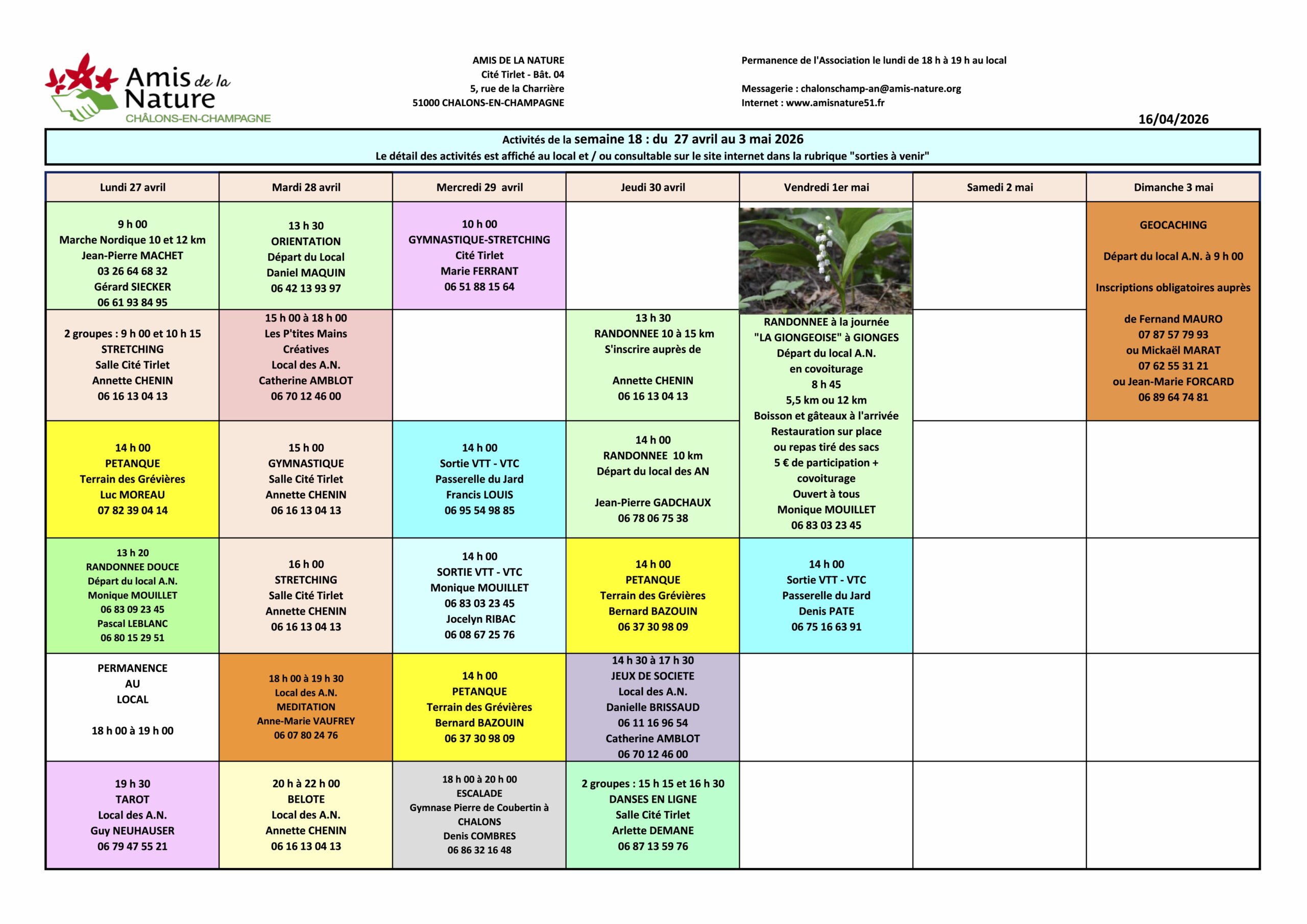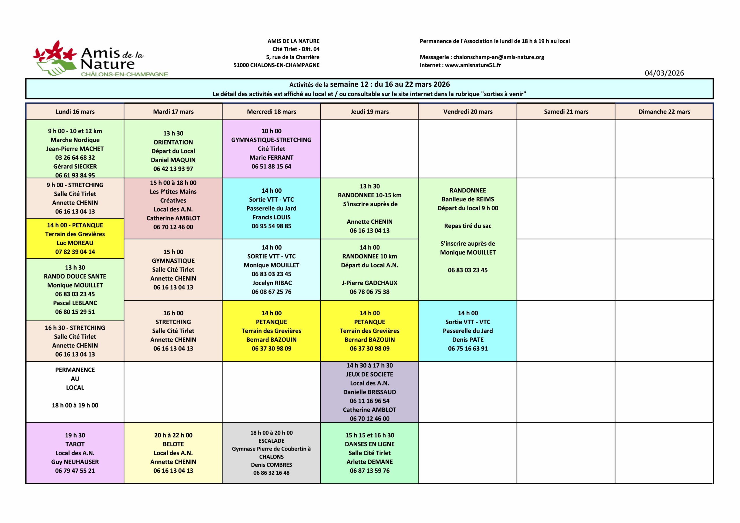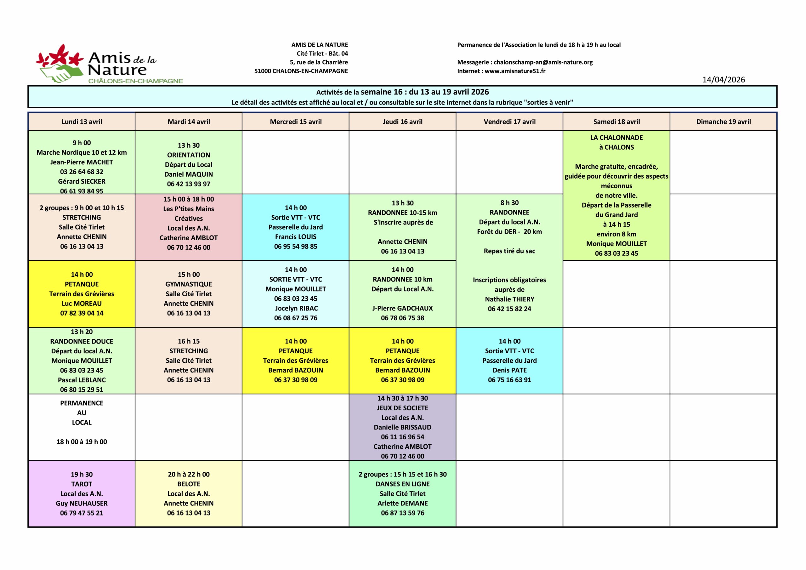 Les fiches ci-dessous peuvent être modifiées pour diverses raisons (annulation, report, changement d'horaires, etc..).
