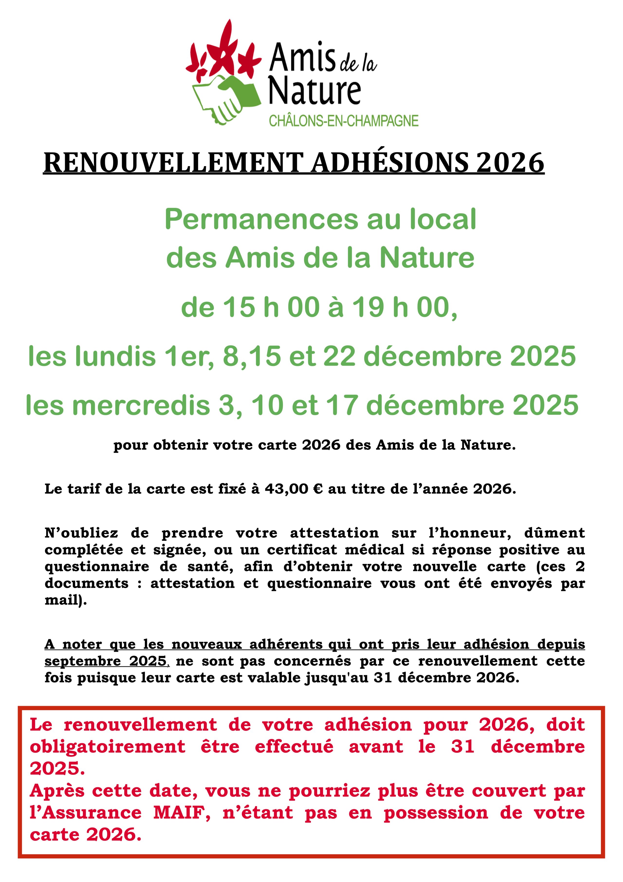 Dates renouvellement adhésions - AN Châlons-en-Champagne