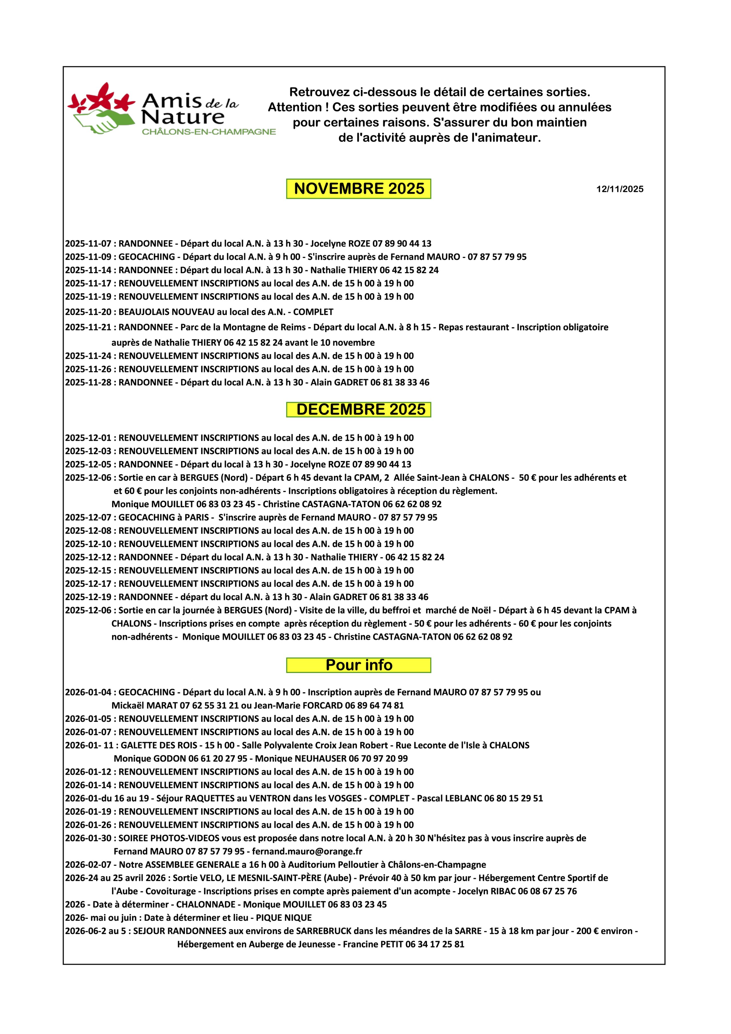 2026-01-30 : Soirée photos - Voyage en Albanie2026-06-02 au 05 : Séjour randonnée aux environs de Sarrebruck
